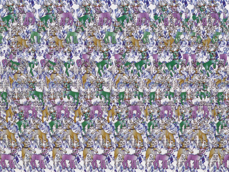 Alice 1 лошадь 2. морда кота 3. кольцо лежит (похоже на ручной эспандер или надутую камеру от колеса авто) 4. Статуя свободы по пояс и дальше ее же голова 5. Елки и 2 оленя.. один лежит, второй сидит около коробки с подарком = вроде так.