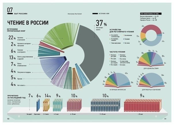 - Почти 40% россиян вообще не покупает и не читает книг; - Читающие же в большинстве своем все еще приобретают книги в оффлайн магазинах (22%); - Чаще всего книги читают в бумажном виде (49%); - Хотя бы раз в день для работы, удовольствия или в личных интересах читают от 7 до 13%; - Более 20 книг в год читает не более 9% россиян.