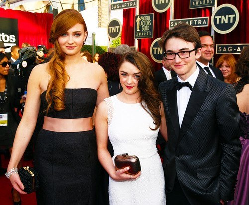Старки Санса, Арья и Бран. Если честно, я их не узнала. За год вымахали.. Акселераты